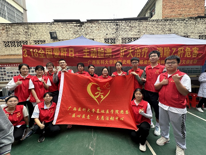 为深入学习贯彻党的二十大精神,全面贯彻落实习近平总书记关于学雷锋志愿服务的重要指示精神,响应世界爱肝日“主动检测、扩大治疗、消除乙肝危害”的号召,3月18日,太阳城娱乐 团委“医心医意”志愿活动中心与太阳城娱乐 附属武鸣医院义诊团队一同于武鸣区和平解放社区居民委员会开展义诊服务活动。