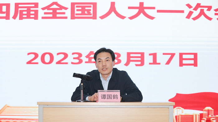 会上,谭国鹤同志对十四届全国人大一次会议的重大意义进行了深入解读,传达学习了习近平总书记在全国两会期间的系列重要讲话精神,特别是在十四届全国人大一次会议闭幕会上的重要讲话精神,并分享了个人的履职感受。他表示,作为新当选的全国人大代表,深感使命在肩、责任巨大,希望通过深入学习宣传贯彻十四届全国人大一次会议精神,激励带动全院教职工努力为边疆民族地区医学教育事业高质量发展贡献更多的科技智慧、教育力量和医学担当。