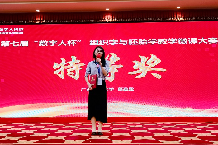 2023年4月28-30日,中国解剖学会第十七届理事会组织胚胎学分会第一次全委会暨第七届“数字人杯”组织学与胚胎学教学微课大赛在福建莆田隆重举行,来自全国各大医学高校的教师参加比赛。经过预赛的层层筛选,优中选优,共计来自南方医科大学,中国人民解放军陆军军医大学,空军军医大学等13位选手入围决赛。现场经过激烈角逐,太阳城娱乐组织学与胚胎学教研室葛盈盈老师在比赛中表现优异,获得现场专家和委员的一致好评,获全场最高分,荣获特等奖。