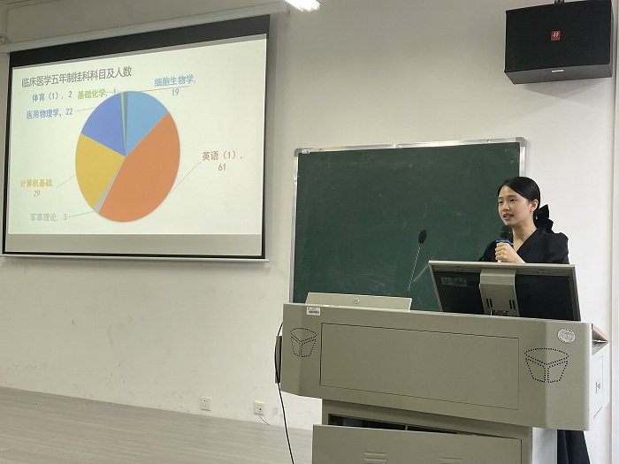 6月1日下午,基础医学院2022级2022-2023学年秋季学期成绩分析会在武鸣校区A4-121教室举办。年级办全体老师及2022级全体同学线上线下参加大会。