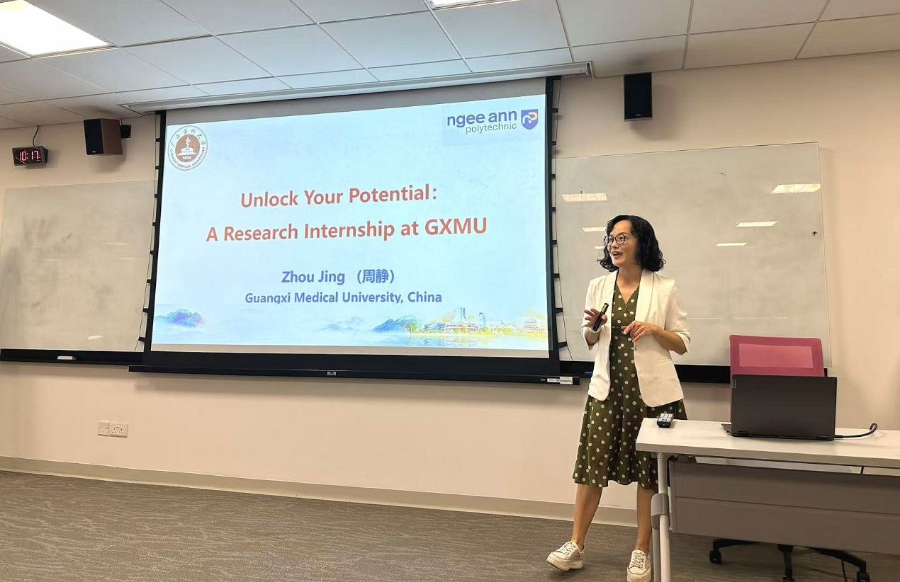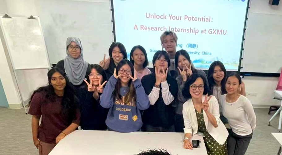 周静教授于12月初赴访问新加坡义安理工学院,并举办了以“Unlock Your Potential——A Research Internship at GXMU”为主题的专题宣讲会。周静教授详细介绍了我校在科研平台、学术资源以及生活保障等方面的综合优势,强调通过高质量的科研训练与沉浸式的文化体验,助力青年学子实现学术成长与能力提升,进一步扩大我校在东盟地区的学术影响力。